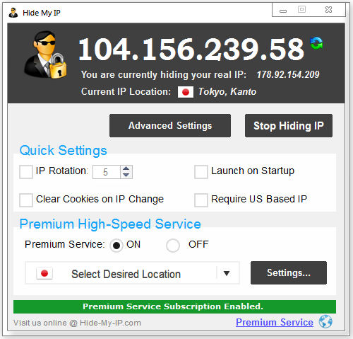 Hiding your IP address is as simple as clicking the Hide My IP button,