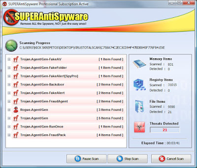 Detect and Remove Spyware, Adware, Malware, Trojans, Dialers, Worms, KeyLoggers, HiJackers and many other types of threats.